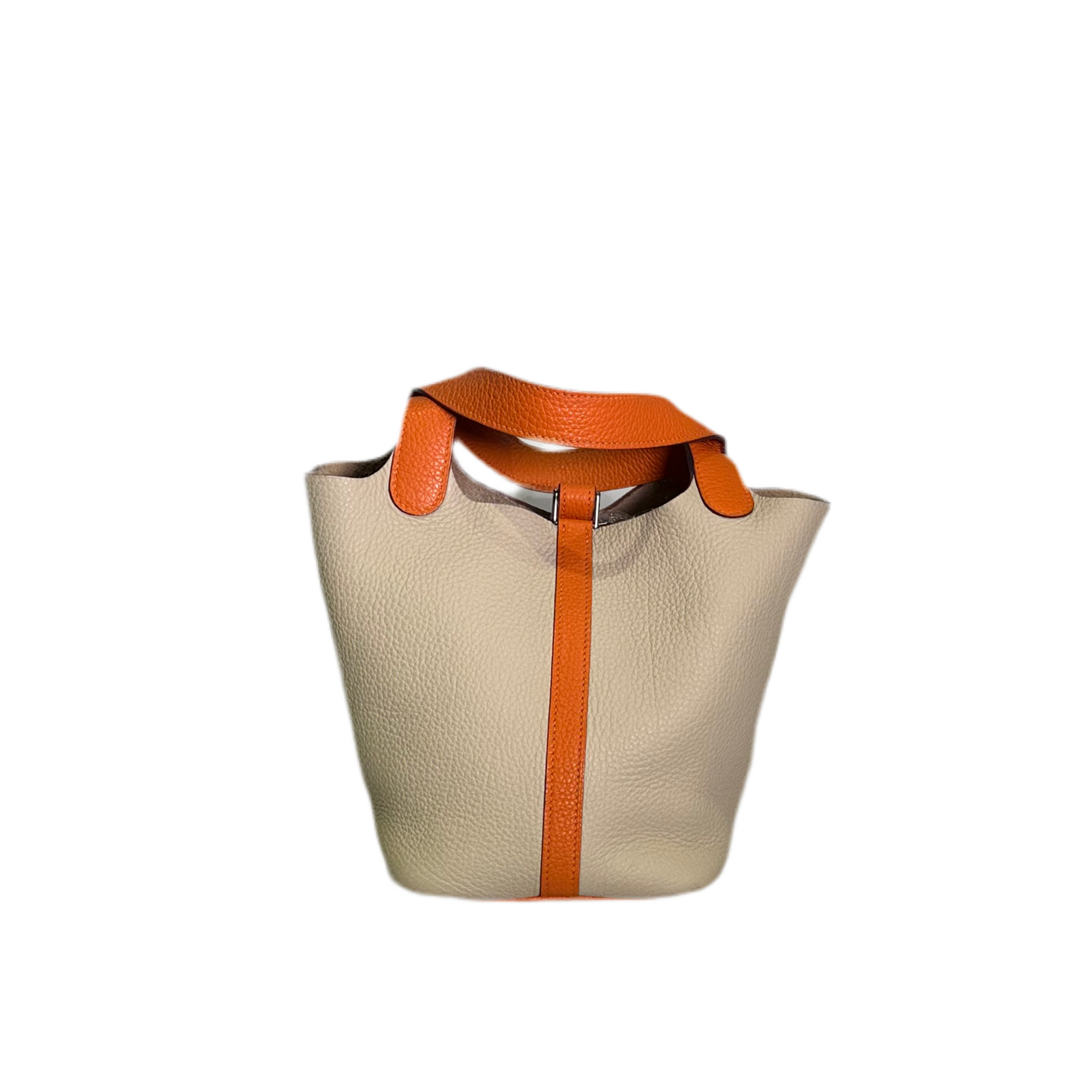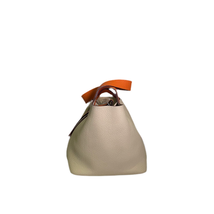 Dieser edle Hermes Picotin 18 aus Togo Leder in Parchamin und mit Orange Hardware in Palladium überzeugt mit zeitlosem Design und hoher Qualität. Der perfekte Begleiter für jeden Anlass. Mit seinem geräumigen Inneren bietet er viel Platz und dank des robusten Leders ist er langlebig und strapazierfähig. Perfekt für stilbewusste und anspruchsvolle Kunden.