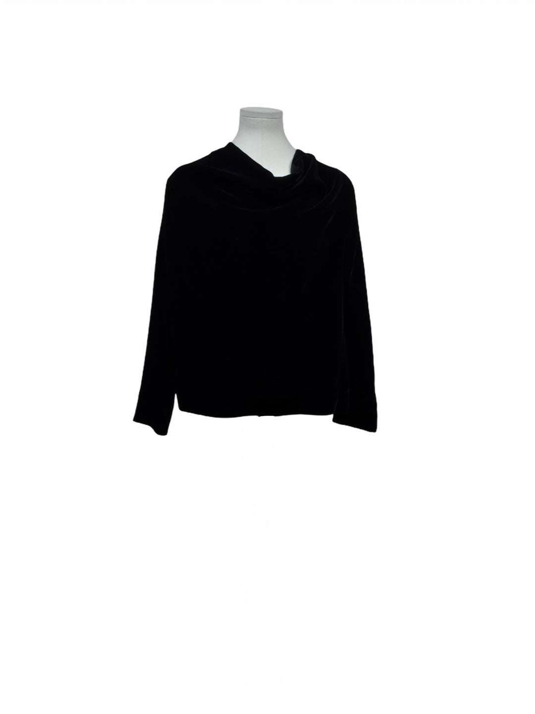 Hermes Pullover Bluse Oberteil Wasserfall Kragen Samt Schwarz Gr. 38