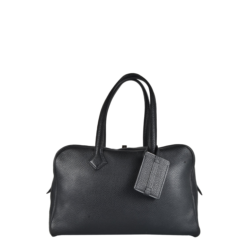 Hermes Victoria 35 Clemence Leder Schwarz Hardware Palladium