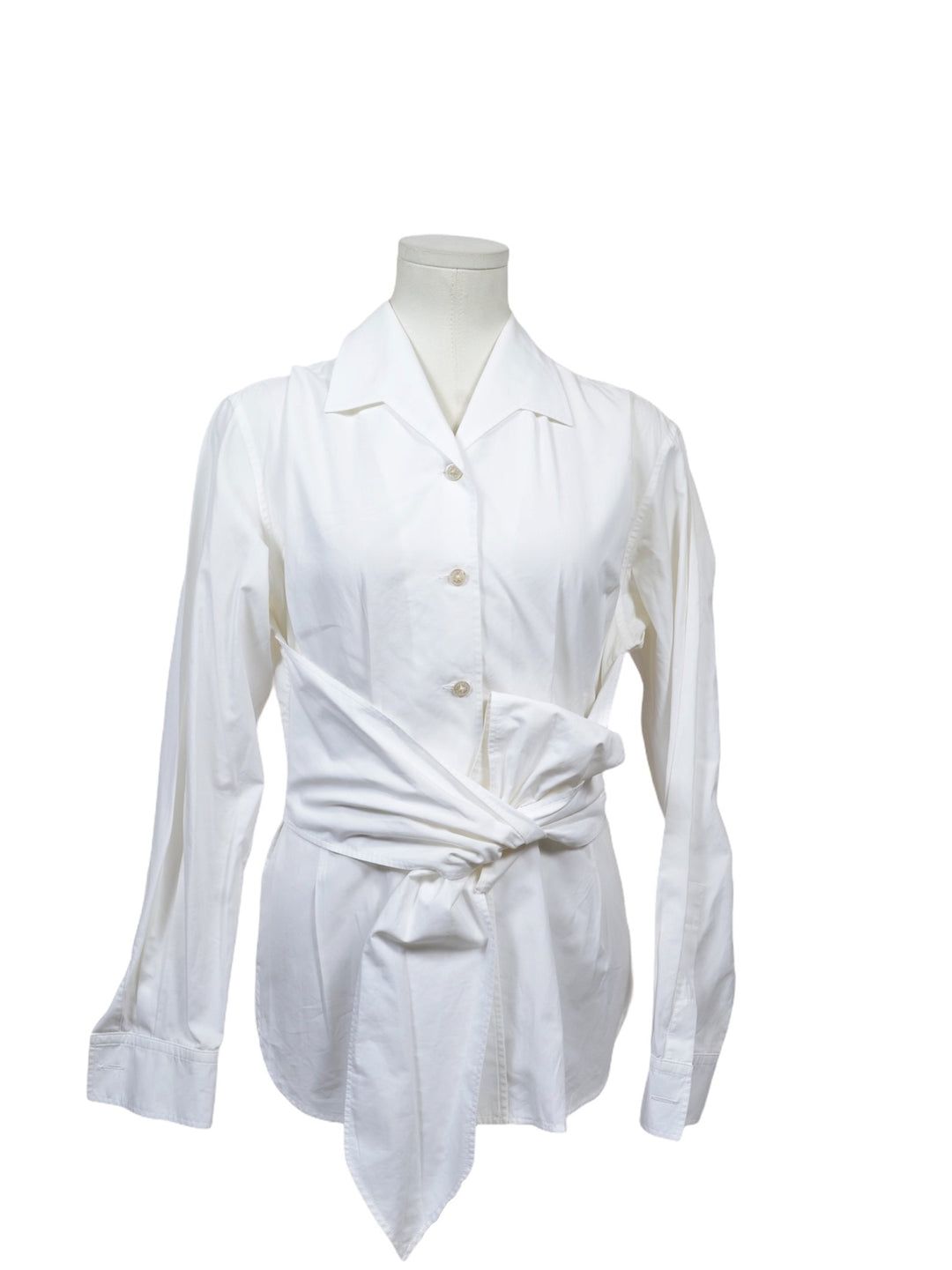 Hermes Wickel Bluse weiß Baumwolle Gr. 36