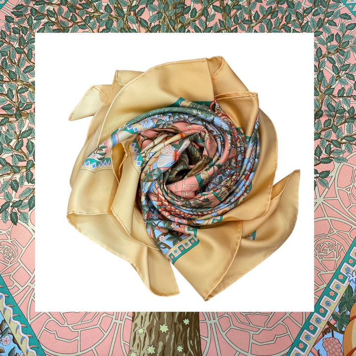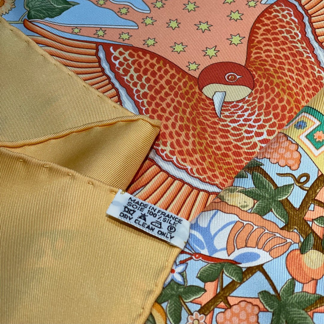 Inspirierend und voller Leidenschaft! Das Hermes Carre Serenite Tuch aus apricot-farbener Seide in der Größe 90 x 90 cm verleiht Ihrem Outfit eine elegante Note. Hergestellt aus hochwertigen Materialien, bietet es sowohl Stil als auch Komfort. Perfekt um Ihren Look aufzupeppen und positive Emotionen zu wecken