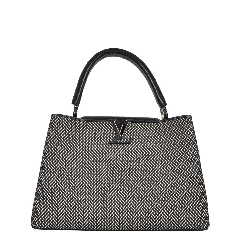 Louis Vuitton Capucine MM Canvas Leder Schwarz Weiß Muster Hardware Silber