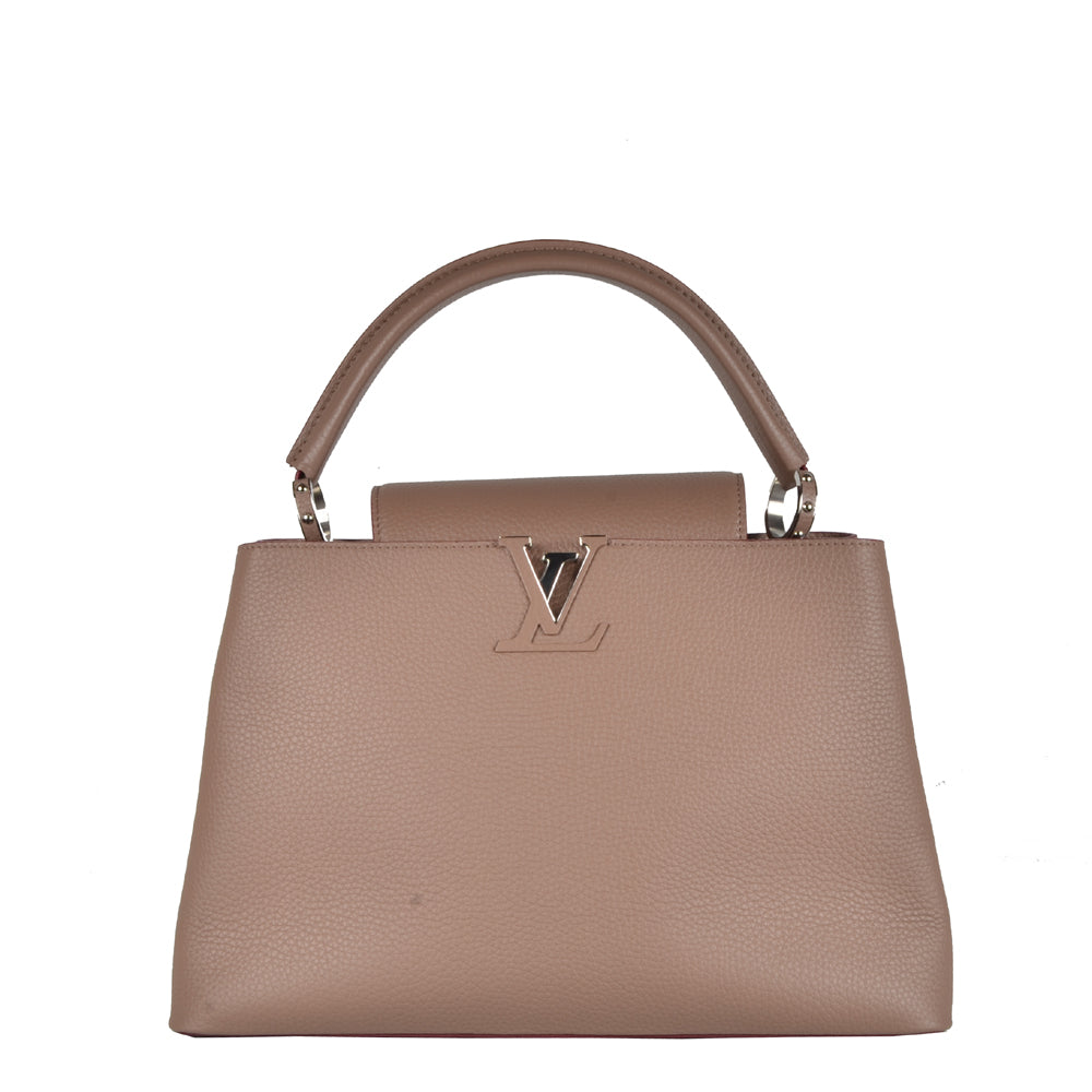 Louis Vuitton Capucines MM Taurillon Leder Galet Hardware Silber