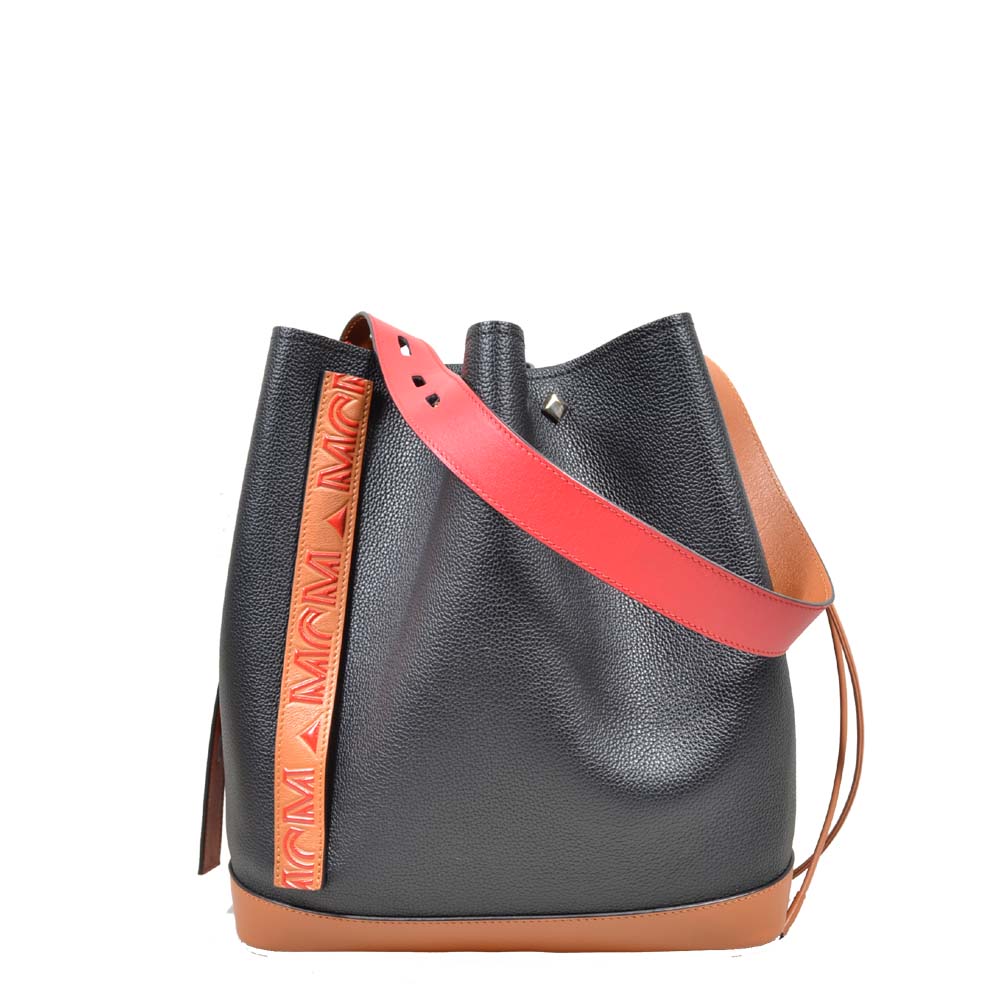 MCM Tasche Hobo Leder Pouch Beige Schwarz Rot