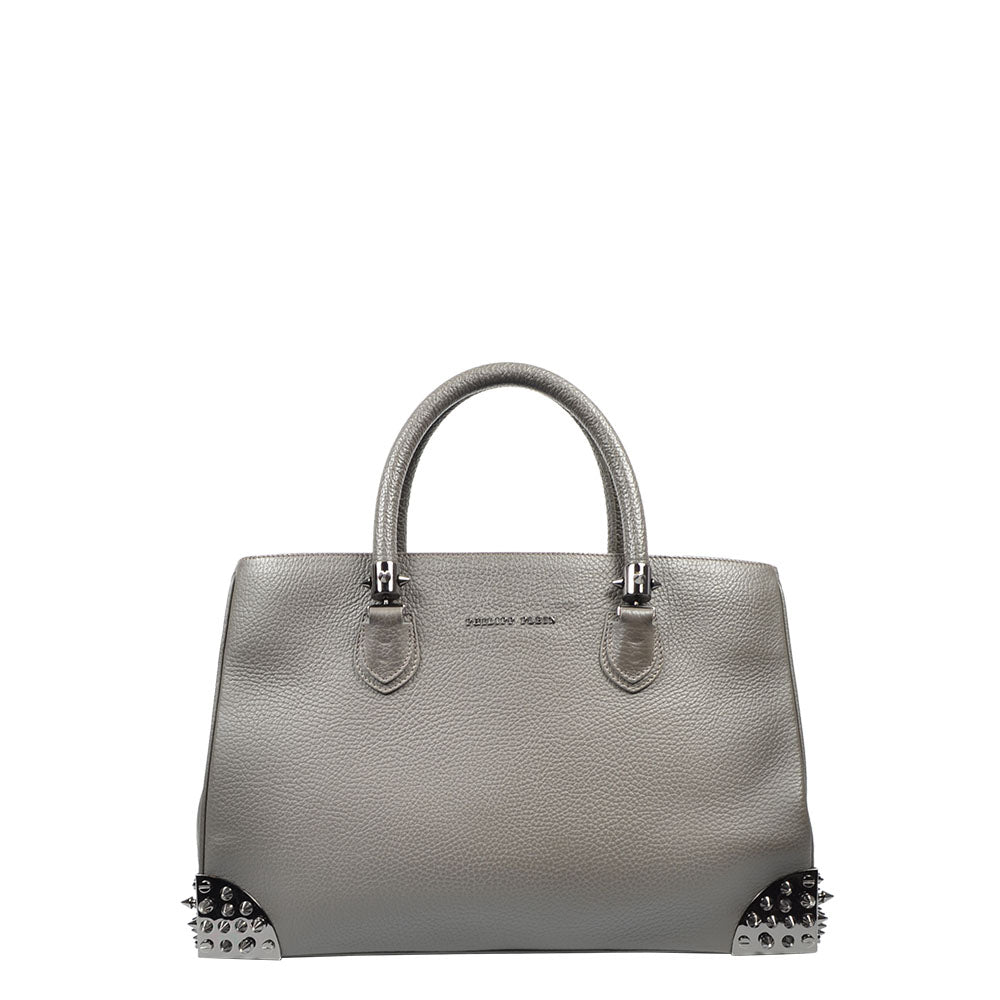 Philipp Plein Tasche Shopper Leder Grau Nieten Hardware Silber