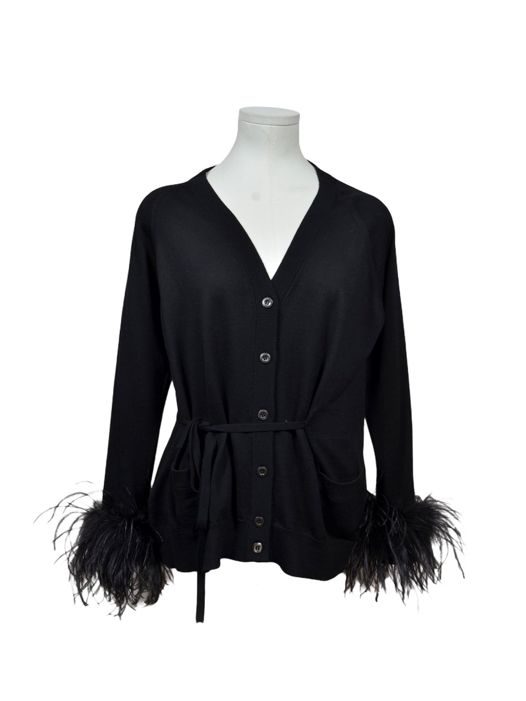 Prada Strickjacke 36 Wolle Federn Schwarz