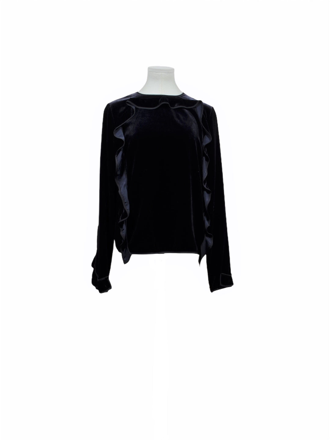 ROCHAS Bluse Oberteil Volant Samt Blau Gr. 38