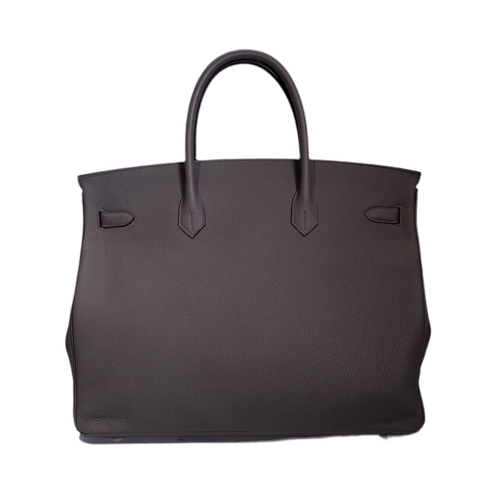 Entdecken Sie die zeitlose Schönheit des Hermes Birkin 40 Togo Leder Gris Etain Hardware Gold Akzenten. Gefertigt aus hochwertigem Togo Leder, bietet diese ikonische Tasche eine geräumige Innenausstattung und zeitlose Eleganz. Perfekt für den täglichen Gebrauch oder besondere Anlässe, wird diese Tasche Sie stilsicher begleiten.