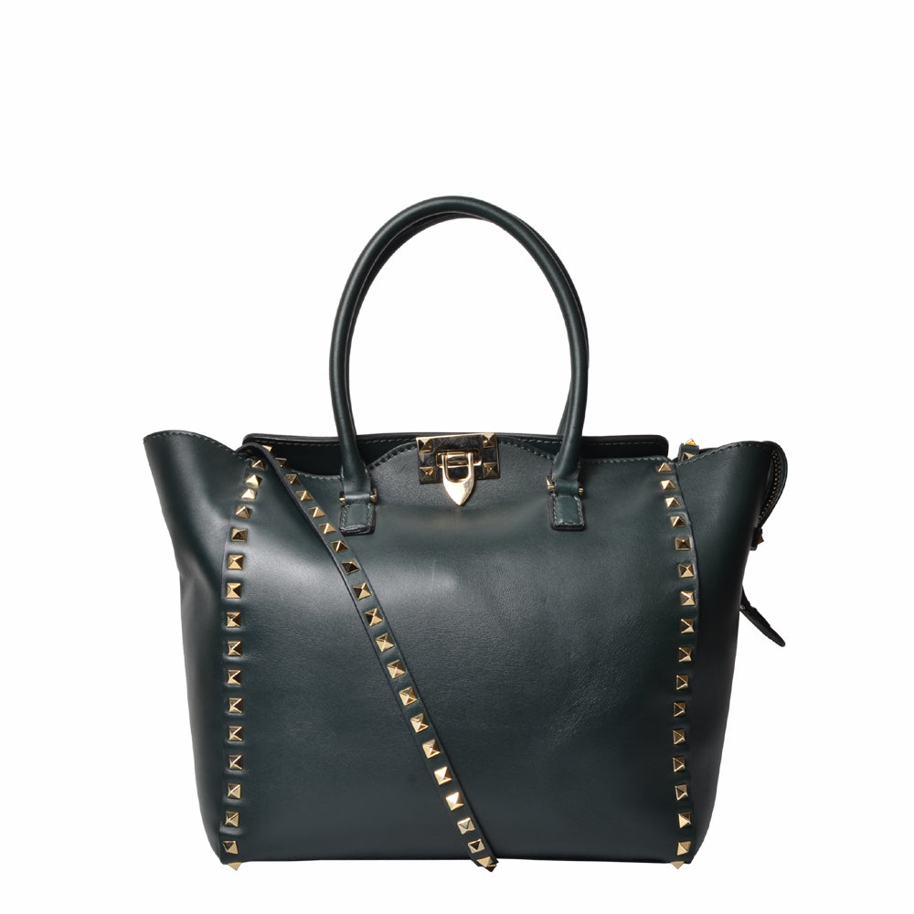Valentino Rockstud Shopper Leder Dunkel Grün Hardware Gold