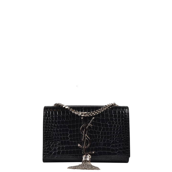 YSL Yves Saint Laurent PomPom Kate Glanzleder Schwarz Hardware Silber
